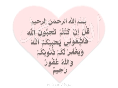 "(Resûlüm!) De ki: Eğer Allah'ı seviyorsanız bana uyunuz ki Allah da sizi sevsin ve günahlarınızı bağışlasın.