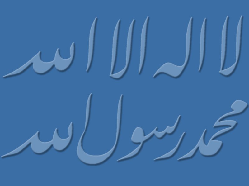3 Boyutlu Hüsn-i Hat Çalışması "Celi Talik stilde, mavi akik dokulu ve mavi arka planlı Kelime-i Tevhîd."