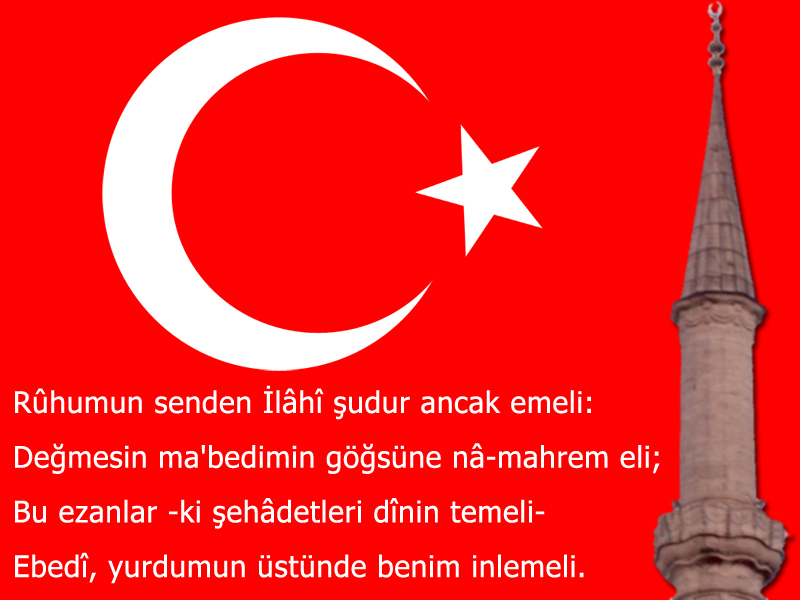 islamiSanat.net tarafından tasarlanmış, Türk bayrağı resmi ve İstiklâl Marşının sekizinci kıtasını içeren çalışma.