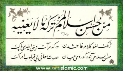 Okunusu: "Min husn-i islâmi'l mer'i terkuhu mâ lâ yugniyh."