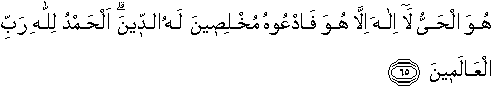HE IS THE LIVING (ONE): there is no god but He: call upon Him, giving Him sincere devotion. Praise be to Allah, Lord of the Worlds!