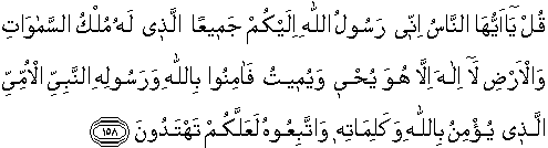 Say: "O men! I am sent unto you all, as the Messenger of Allah, to Whom belongeth the dominion of the heavens and the earth: there is no god but He: it is HE THAT GIVETH BOTH LIFE AND DEATH. So believe in Allah and His Messenger, the unlettered Prophet, who believed in Allah and His Words: follow him that (so) ye may be guided."
