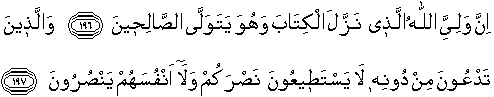 "For MY PROTECTOR IS ALLAH, Who revealed the Book (from time to time), and He will choose and BEFRIEND THE RIGHTEOUS." "But those ye call upon besides Him, are unable to help you, and indeed to help themselves."